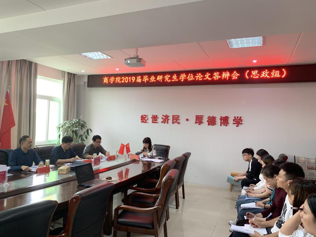 5月16日下午,ok138cn太阳集团529在506会议室举行了学科教学(思政)专业2019届硕士研究生学位论文答辩会。答辩委员会以研究生处处长李全亮教授为主席,由ok138cn太阳集团529党委书记盛正国教授、法社学院贾义保教授、ok138cn太阳集团529副院长梅士建教授、ok138cn太阳集团529陈俭副教授担任答辩委员,答辩秘书和ok138cn太阳集团5292017级、2018级研究生参加本次活动。