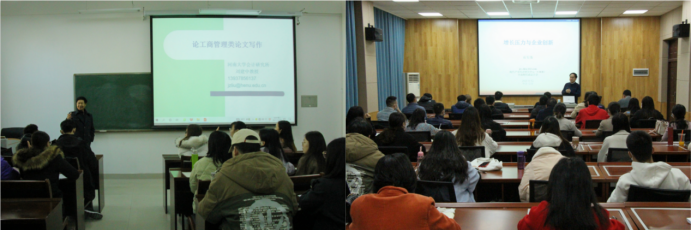 2021年,学院积极动员、资助研究生参加包括中国数量经济学会年会、“中国·实践·管理”论坛、中国流通学术论坛等多场全国性学术会议。其中,2019级会计学研究生张清燕在第12届“中国·实践·管理”论坛宣读论文并获得点评嘉宾高度评价。与此同时,学院邀请中南财经政法大学卢现祥和石军伟教授、辽宁大学于金富教授、河南大学刘建中教授、财政部财科院胡振虎研究员等知名学者为研究生讲学。此外,学院在办公场地非常紧张的情况下,依然为研究生腾出一间实验室和两间办公室用于研究生开展日常性学术讨论与思维碰撞。