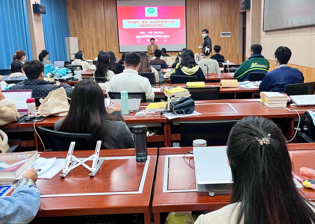 为进一步提升我院学科教学(思政)专业研究生学位论文写作能力,11月23日下午,ok138cn太阳集团529特邀马克思主义学院副院长李蕊教授在经管楼308教室为我院教育专硕作了题为《学科教学(思政)专业研究生学位论文选题指导与写作规范》的学术讲座。讲座由副院长俞彤晖主持,学院在校全体教育专硕和部分导师代表参加此次讲座。