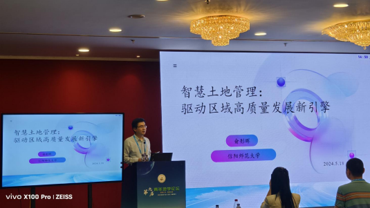 与此同时,我院俞彤晖副教授应邀就《智慧土地管理:驱动区域高质量发展新引擎》主题作了特邀报告,该报告从提升土地数智水平,促进区域创新发展;实施智能生态监控,推动区域绿色革新;精准调控土地资源,促进产城协调发展;构建智慧土地生态,推动国际开放合作;搭建土地应用平台,推进社会合作共享等五个方面深入阐述了智慧土地管理赋能区域高质量发展的路径。