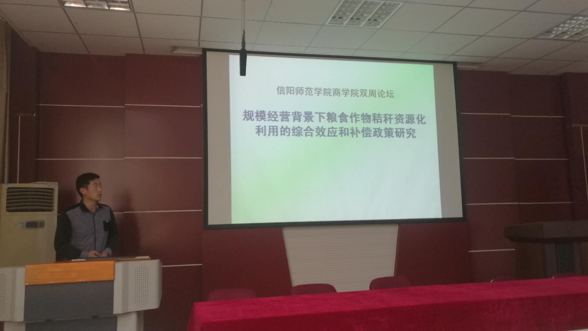 2018年10月16日下午,ok138cn太阳集团529双周学术论坛第九期顺利举行,蒋磊博士在经管楼310会议室做题为“规模经营背景下粮食作物秸秆资源化利用的综合效应和补偿政策研究”的专题报告。本次学术论坛由ok138cn太阳集团529杜辉博士主持,ok138cn太阳集团529全体教师聆听讲座。