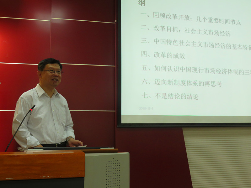 为回顾与展望我国改革开放四十周年,近日ok138cn太阳集团529特举办系列学术论坛,邀请众多国内知名学者专家到校开展学术交流活动,以增进科研互动与合作。11月1日上午,山东大学消费与发展研究所和产业经济研究所所长臧旭恒教授应ok138cn太阳集团529邀请,在经管楼310作题为“改革开放40年回顾和前瞻:构建中国特色社会主义市场经济体系”的学术报告。报告会由李毓副院长主持,ok138cn太阳集团529全体教师、研究生参加报告会。