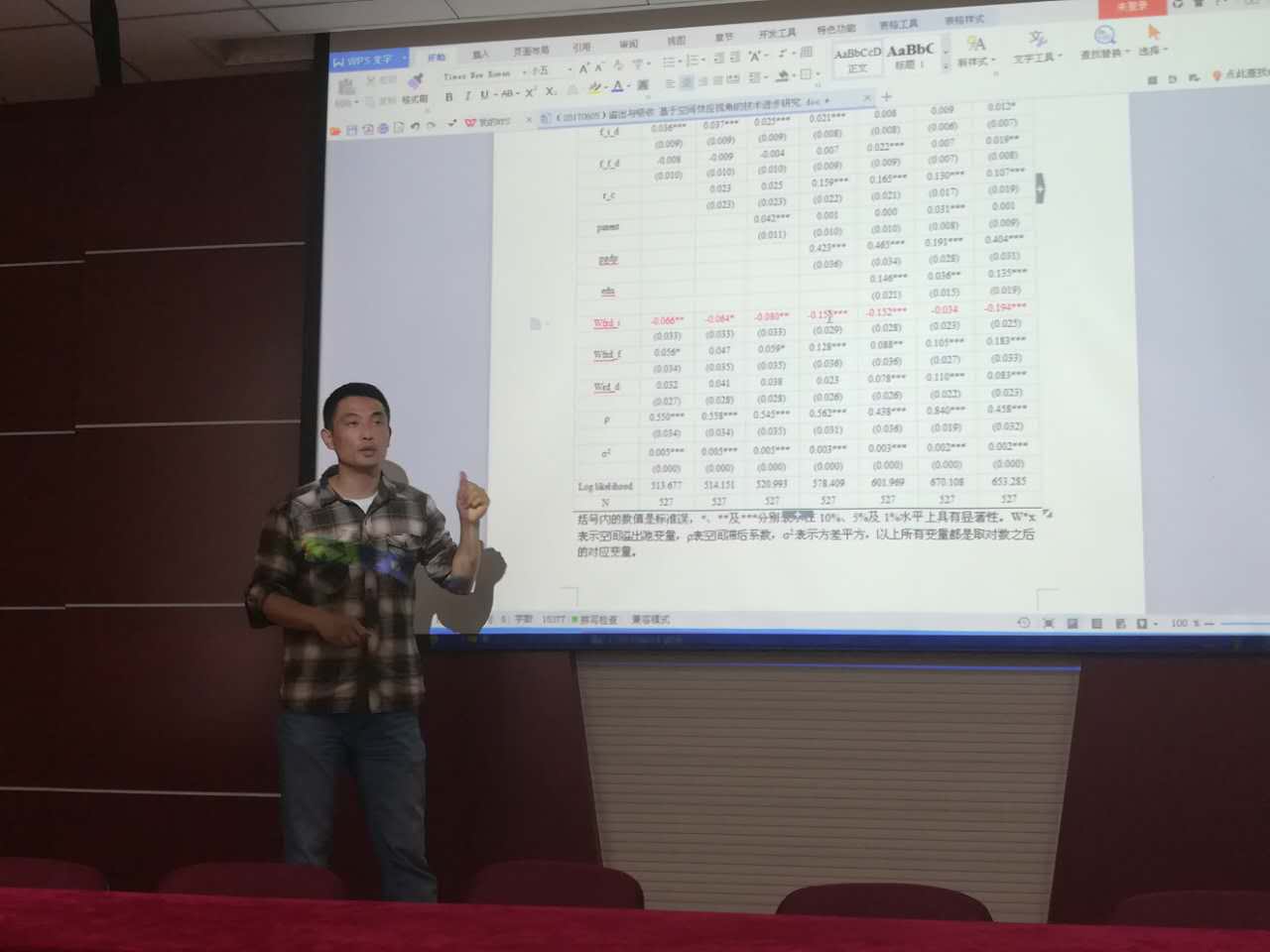 上官绪明博士的讲座从文献综述、本文贡献、理论模型、实证分析四个方面来阐述溢出与吸收: 空间视域下我国区域技术进步研究。通过空间相关检验、计量模型选择与设定、预期结果、稳健性检验得出以下结论:空间技术溢出是促进技术进步的重要路径之一;技术溢出和吸收能力均对区域技术进步具有显著的促进效应;异质的吸收能力对技术效率与技术进步率影响程度存在显著差异。本场报告的内容丰富,借鉴性强,给各位老师和同学在科研上带来很大帮助,报告会在热烈掌声中结束。