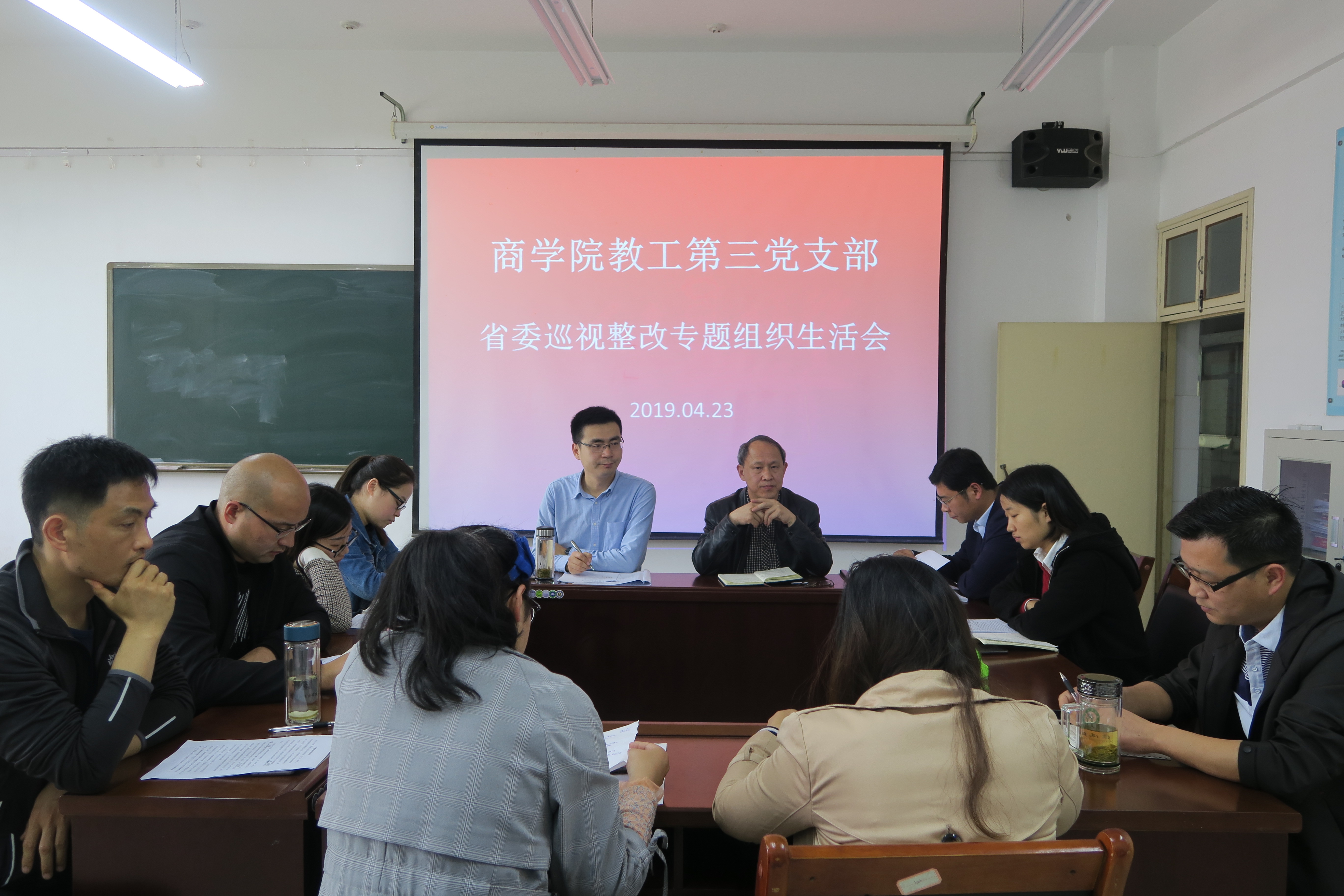 423日,根据学校党委的统一部署,ok138cn太阳集团529教工第三党支部在经管楼502教室召开省委巡视整改专题组织生活会。这次组织生活会的主题是:聚焦省委巡视反馈问题和要求,以自我革命的勇气和担当对照检查、剖析根源、强化整改。会议由支部书记俞彤晖同志主持,支部全体教工党员出席,期间,ok138cn太阳集团529党委书记盛正国同志列席参加教工第三党支部组织生活会。