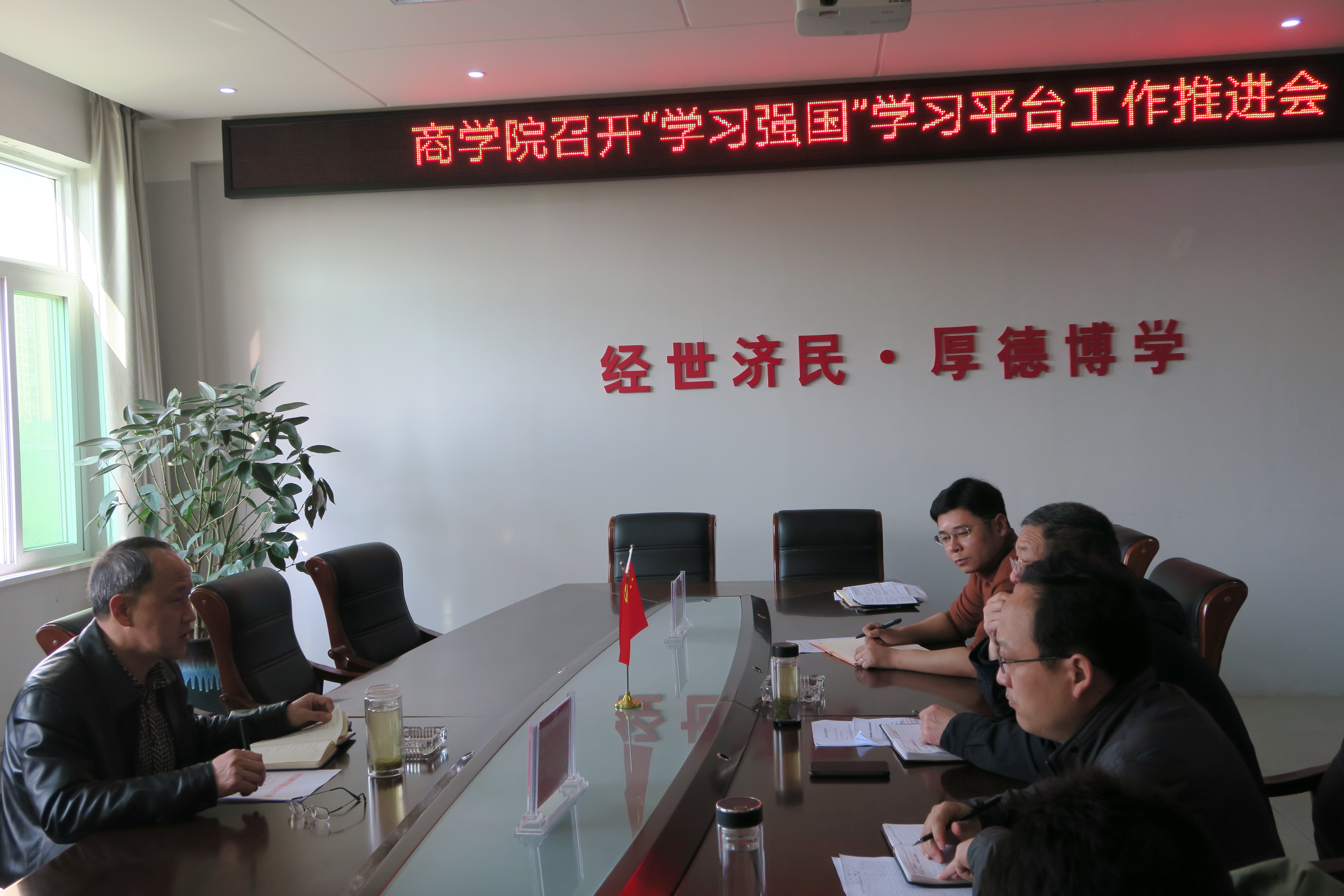 为响应校党委关于推广“学习强国”平台的号召,ok138cn太阳集团529于3月18日在经管楼会议室召开了“学习强国”平台推进会。ok138cn太阳集团529党委书记盛正国,副书记梅士建、王永贵,副院长李毓,院长助理杜辉一同出席本次大会。