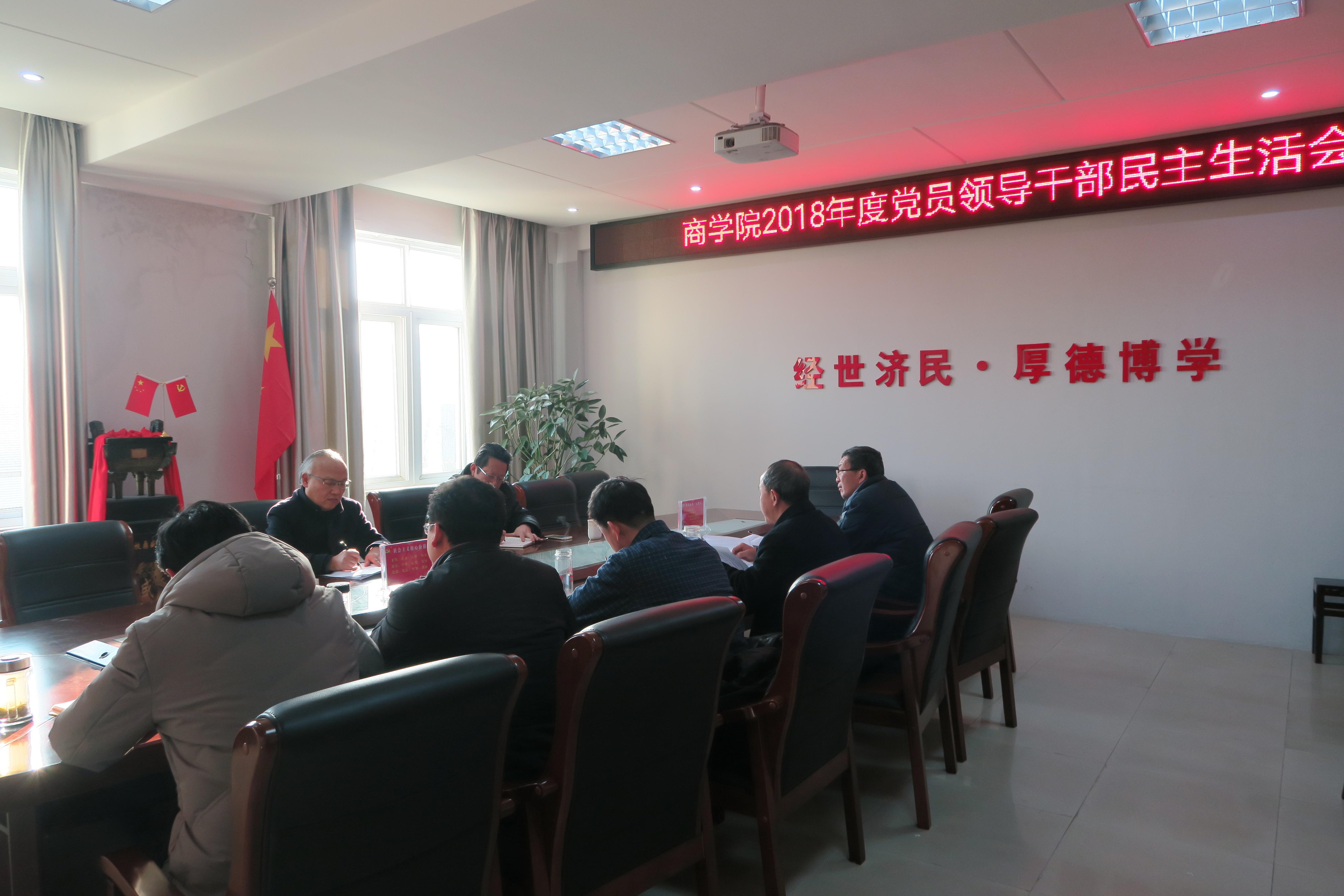 1月16日下午,商学院在经管楼506会议室召开了2018年党员领导干部民主生活会。校纪委书记龚立新和校纪委纪检员童建园莅临本院指导此次民主生活会的召开。院党委书记盛正国、副书记王永贵、副院长梅士建、李毓、院长助理杜辉等党员领导干部参加了会议。会议由ok138cn太阳集团529党委书记盛正国主持。