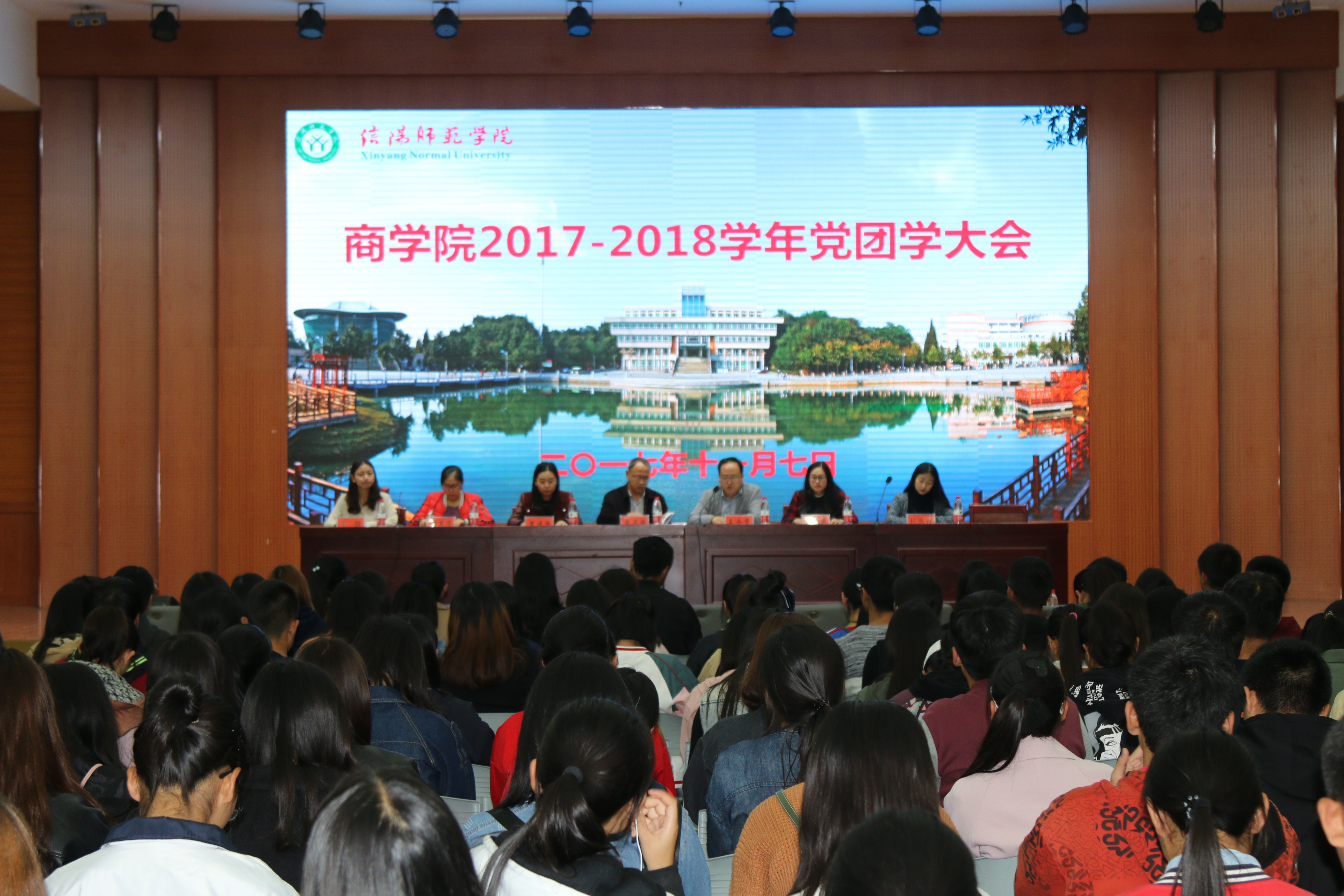 11月7日下午,我院于逸夫楼报告厅召开了2017-2018学年党团学大会。院党委书记盛正国,党委副书记王永贵,团委书记黄诗雨,团委老师郭迎亚、韩月华出席此次会议。分团委副书记杜欣睿、学生会主席王静以及全体学生党员及学生干部共同参加了此次会议。大会由王永贵主持。
