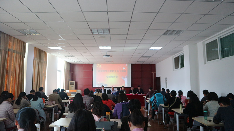 10月17日、23日,学院召开党委中心组会议,学习党的十九大精神,讨论部署学院学习党的十九大精神具体实施方案。会议上指出,要充分发挥党委中心组的示范带头作用,要充分结合教职员工的专业特点,要充分调动广大师生员工的学习热情,要将学习十九大精神活动常态化、制度化。