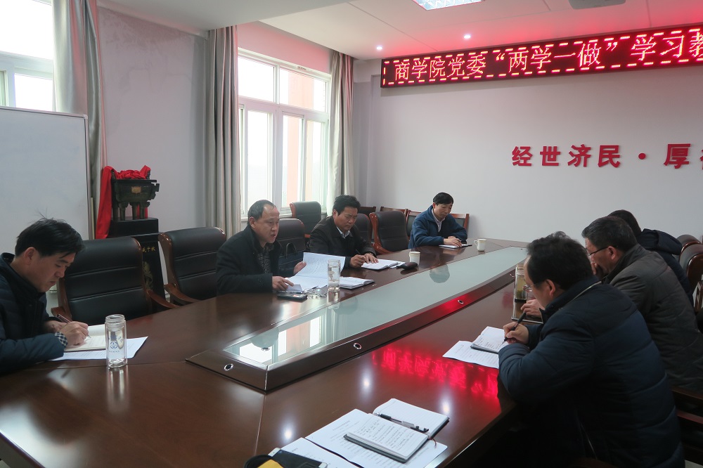 按照校党委“两学一做”学习教育专题民主生活会的安排,1月3日下午,商学院组织召开了处级党员领导干部专题民主生活会。副校长齐城、纪委副书记周子良出席并全程指导了民主生活会。商学院党委领导班子全体成员参加会议。民主生活会由商学院党委书记盛正国主持。