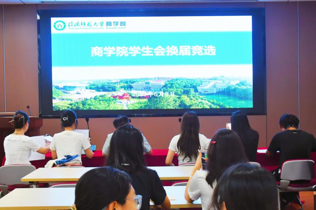 2025 年 6 月 8 日,我院团委学生会换届选举在经管楼 310 会议室举行,旨在选拔品学兼优的学生骨干推动学生工作发展。团学老师盛海、学生兼职团委副书记崔浩赟及学生会主席团成员担任评委。 选举自 5 月 27 日启动,经资格审查,62 名候选人进入公开答辩。候选人进行 4 分钟脱稿演讲并回答提问,展现良好素养与能力。