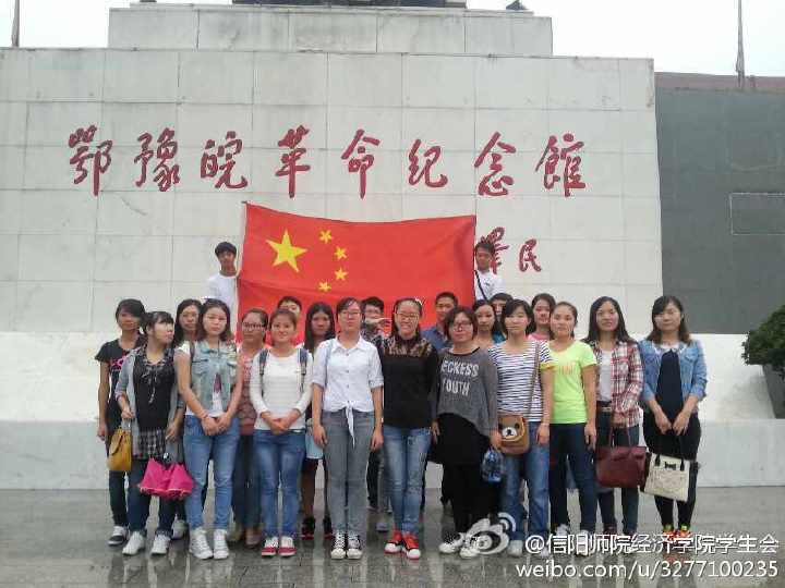 9月27日上午8时,经济学院学生干部在校团委的带领下步行前往红军广场,同学们冒雨前行,历经一个小时的路程来到了鄂豫皖革命纪念馆。