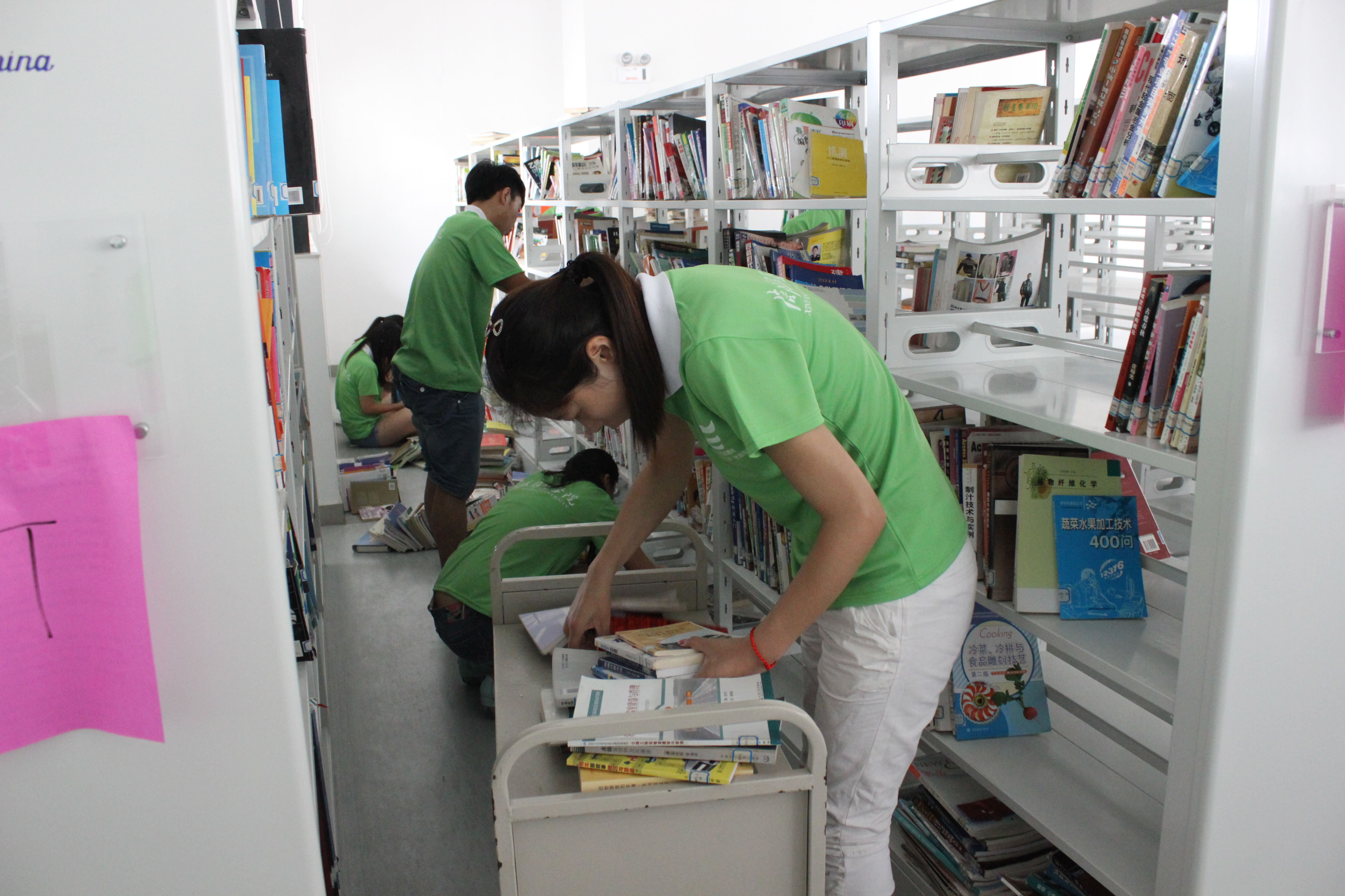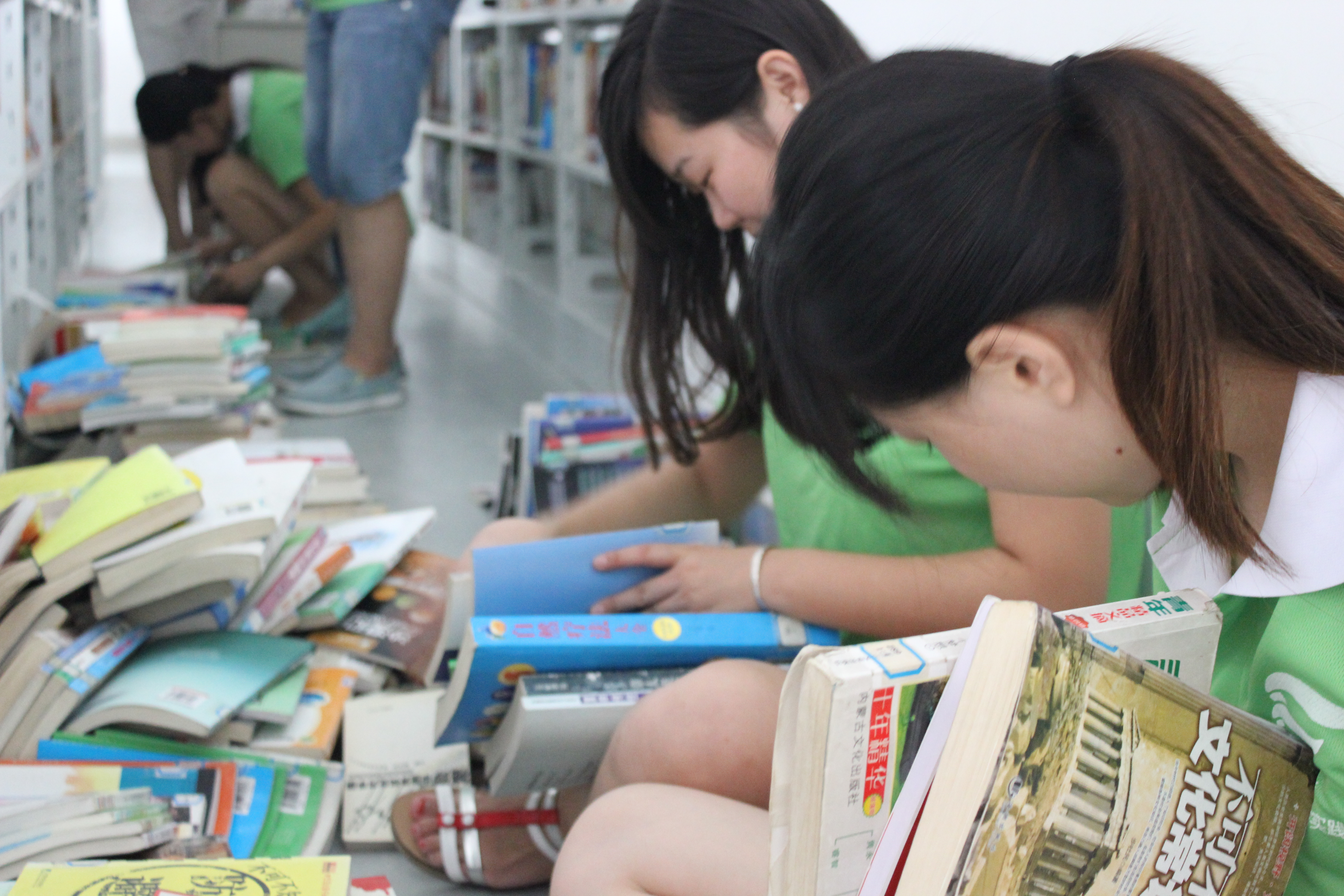 首先社会实践小分队在图书馆老师的指导下开展图书分类工作。同学们团结一致,互相帮助,或一人抱着多本书,或坐在地上细致分类,或用推车运书,同学们面对数量繁多的图书毫无怨言,都认真、耐心、负责地工作。大家相互帮忙,整理工作中不时有欢快的笑声,场面温馨。