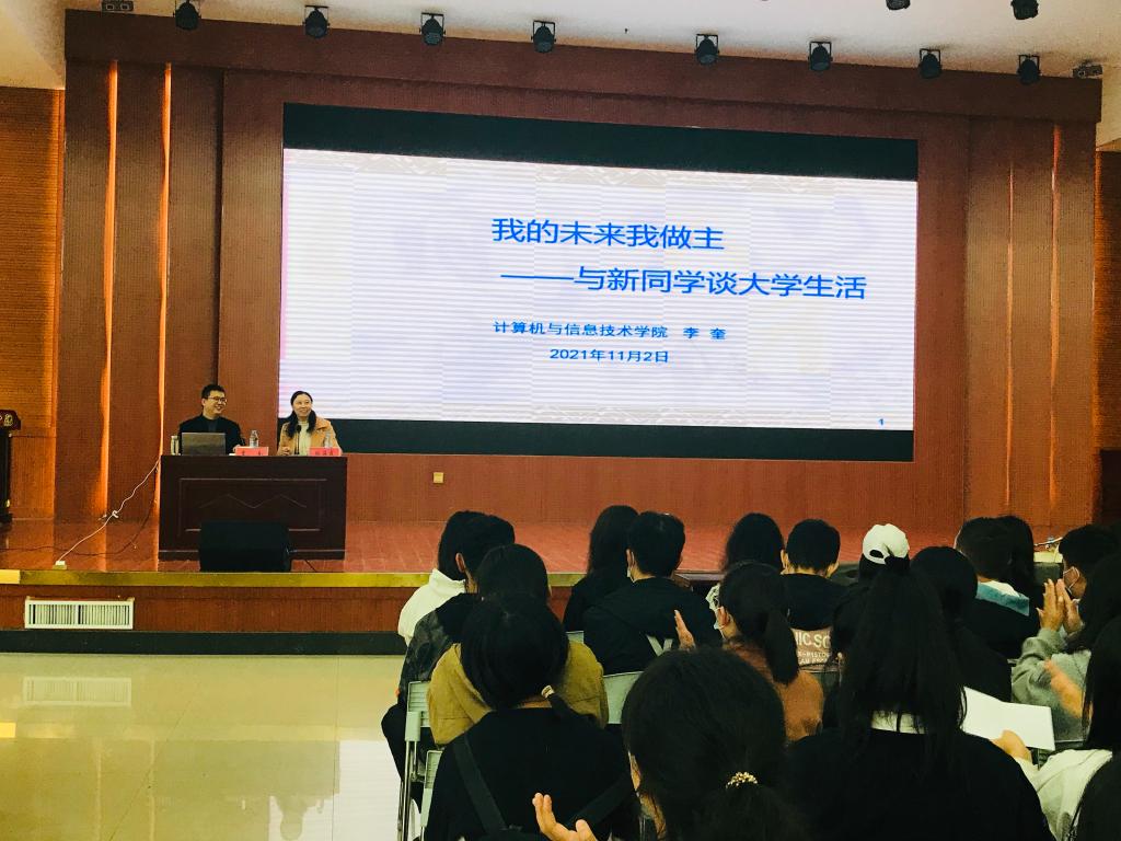 根据校团委统一安排,11月2日,计算机学院党委副书记李奎应邀为2021级新生团校作《我的未来我做主——与新同学谈大学生活》专题报告,ok138cn太阳集团529和预科班全体新生参加,报告会由ok138cn太阳集团529党委副书记张海霞主持。