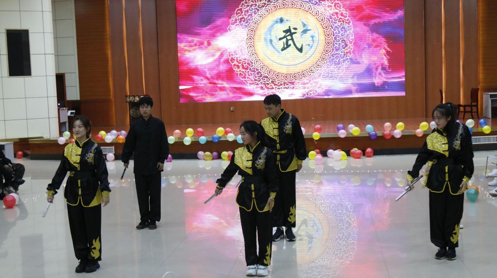 舞会进行到中半场,武术协会的同学带来了激动人心的武术表演,一套行云流水的动作让在场观众连连惊叹。中场休息环节,主持人通过接听场外观众的来电,让线下与线上更好地融合在一起,充分调动了观众的热情。来电结束后,舞会继续进行,表演涵盖现代舞、民族舞、国标舞、爵士舞四大舞种,舞曲时而温柔似水、时而热情似火。活动现场流光溢彩,灯光绚丽变幻,各位选手戴着假面以曼妙的舞姿,给现场观众带来了一场视觉盛宴。最后,在热烈的掌声中,各位参赛选手与领导老师合影留念,本次假面舞会完美落幕。