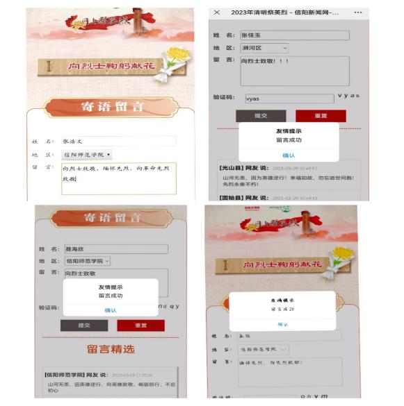 致敬——鲜花献英烈,云上寄哀思。3月29日至4月2日,商学院鼓励全体学生通过参加“网上祭英烈”活动,向先贤先烈鞠躬献花、抒写感言寄语;同时利用微信转发朋友圈,带动广大群众积极参与。此次活动的开展,不仅为英烈送上最庄重、最崇高的敬意,也进一步增强了同学们爱党爱国的浓厚情感,使爱国主义精神深入人心。
