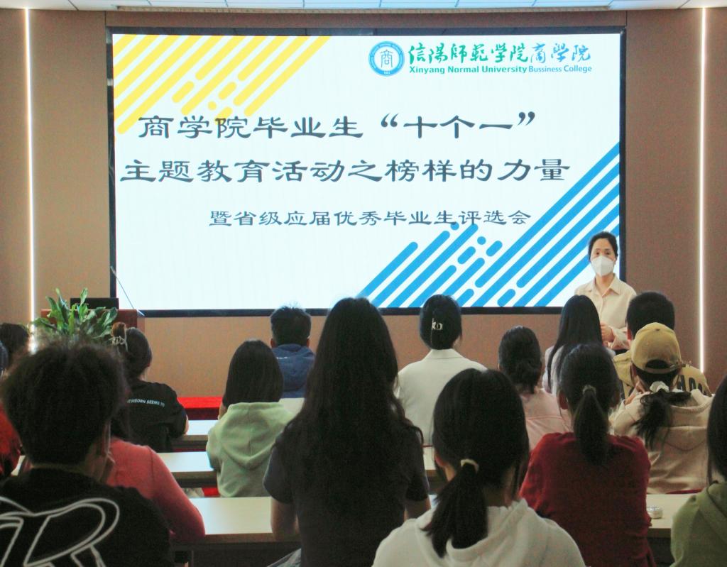 为进一步规范省级优秀毕业生评审工作,树立优秀毕业生典型,激励广大学子汲取榜样力量、刻苦学习、全面发展,5月22日下午,我院在经管楼310举办“榜样的力量”之省级优秀毕业生评选活动。我院党委副书记张海霞,团委老师李梦,19级辅导员杨紫涵出席活动,各班学生代表参加活动.