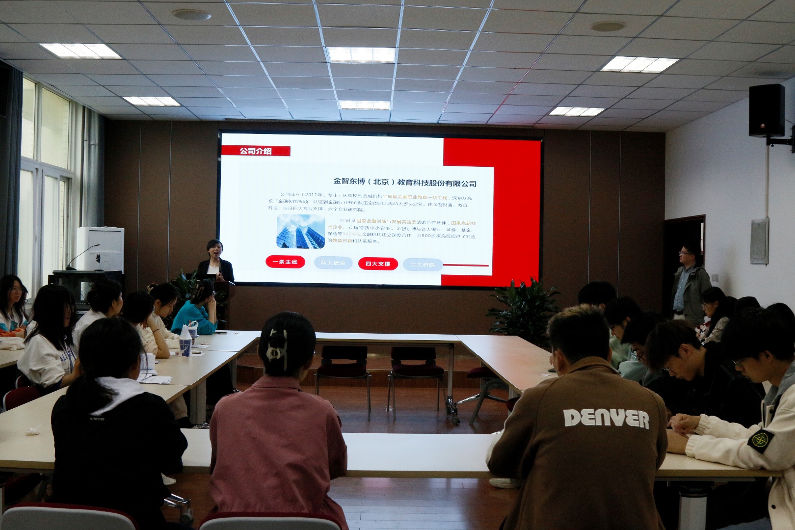 为贯彻落实教育部关于毕业生就业工作的总体部署,深入开展就业育人工作,持续推进毕业生与用人单位精准供需对接,为应届毕业生高质量就业拓宽渠道,5月10日上午,金智东博教育科技股份有限公司就业招聘专场宣讲会在经管楼310会议室举行,我院2023届毕业生积极参加。