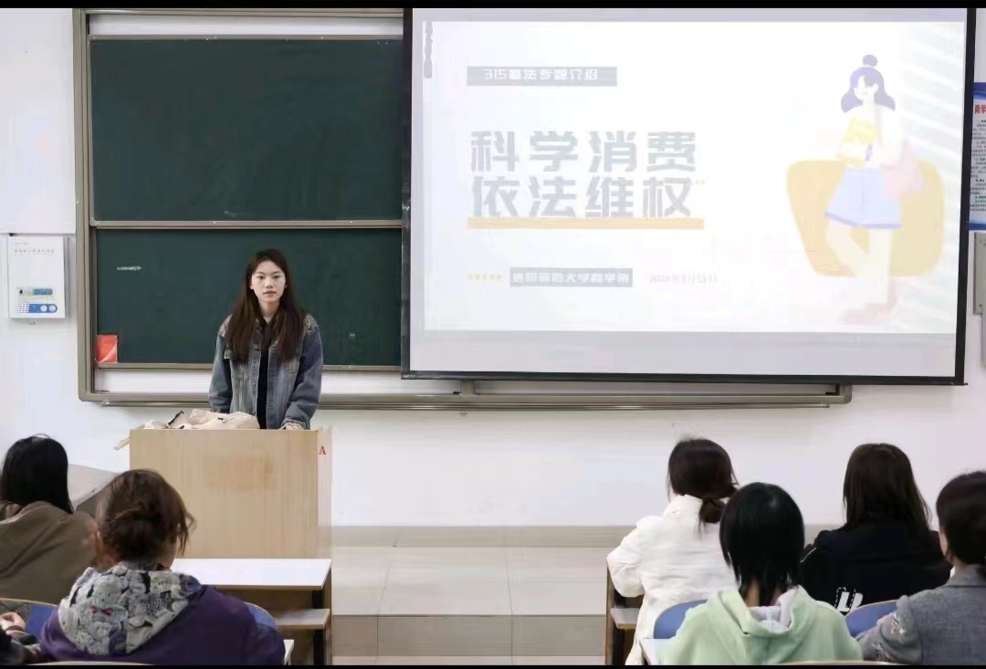 为加强大学生消费者权益保护意识,引导大学生树立科学、健康的消费观念,3月15日,ok138cn太阳集团529宣讲团在经管楼104教室开展了主题为"科学消费、依法维权"的普法专题介绍活动。ok138cn太阳集团529组织部赵烜艺担任本次活动主讲人。