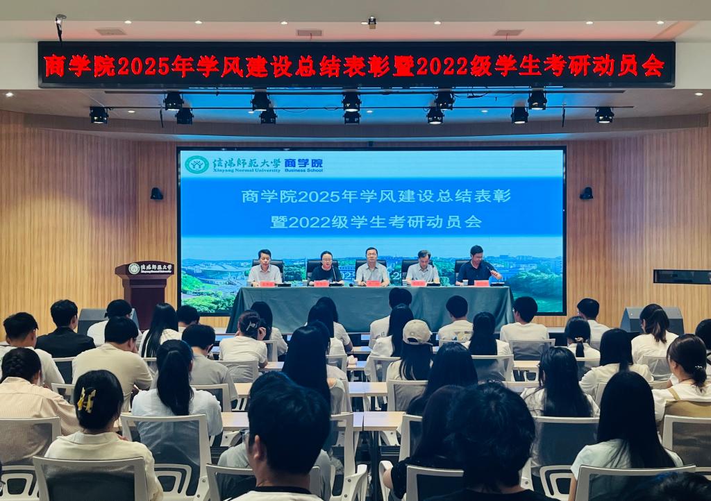 5月20日晚,我院在谭山书院博雅讲堂召开2025年学风建设总结表彰暨2022级学生考研动员会。党委书记李辉、院长彭荣胜、党委副书记黄钰莹、副院长杜辉、副院长梁静波和专职辅导员袁巍峰、盛海出席会议,2025届本科生代表、研究生代表和2022级本科生参加会议,会议由黄钰莹主持。