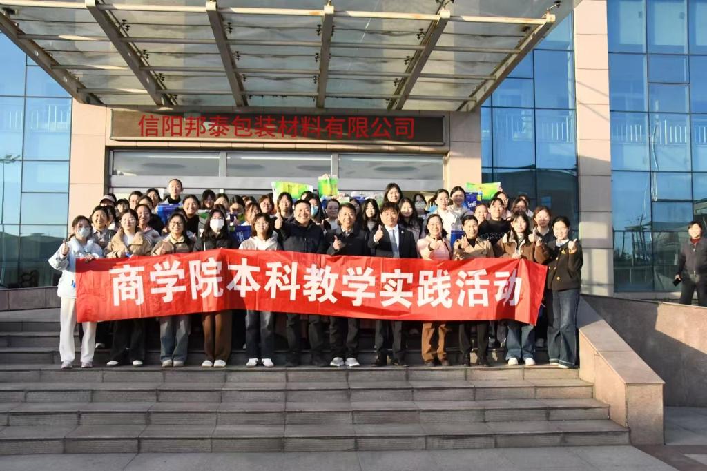 11月25日,ok138cn太阳集团529副院长梁静波、会计系主任郭跃芳带领会计学专业教师和学生代表,赴信阳鸡公山酒业有限公司与信阳邦泰包装材料有限公司开展专业见习活动。