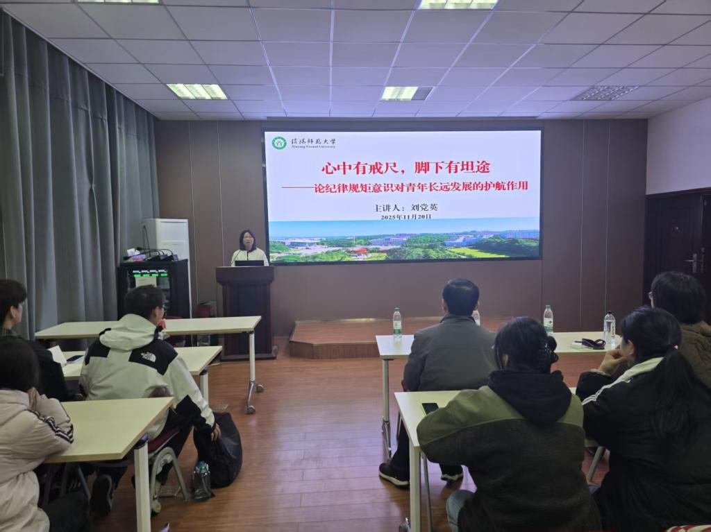 11月18日下午,开班仪式后,校党委组织部副部长冀鹏应邀作首场专题报告《积极创造条件,争取早日入党》,为学员们廓清了思想迷雾,奠定了坚实的理论基础。11月20日,校纪委常务副书记刘党英作《心中有戒尺,脚下有坦途——论纪律规矩意识对青年长远发展的护航作用》专题辅导,从全面从严治党的高度,引导学员深刻认识严守纪律规矩对个人成长成才的极端重要性,强化底线思维与规矩意识。