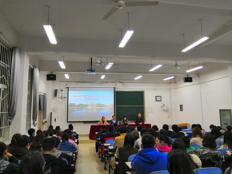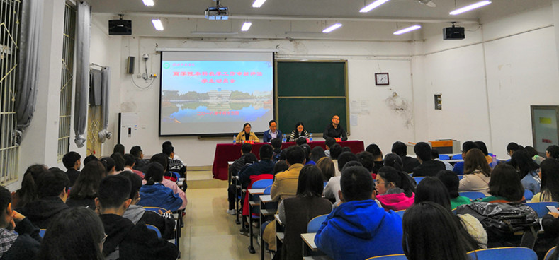 为积极贯彻学校2018年本科教学工作审核评估要求,充分展现我院优良学风和青年学子的良好精神风貌。10月15日晚7点,我院于经管楼103举行本科教学工作审核评估学生动员会。我院党委副书记王永贵出席了会议,团委老师黄诗雨、黄亚俊、韩月华,各班班长、团支书以及学生会、宣传中心主要学生干部、学生党员代表近200人参加了动员会。会议由黄亚俊主持。