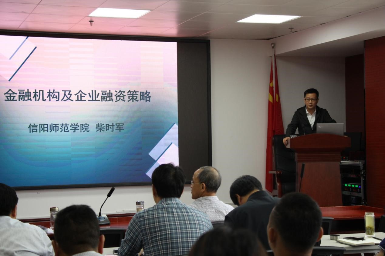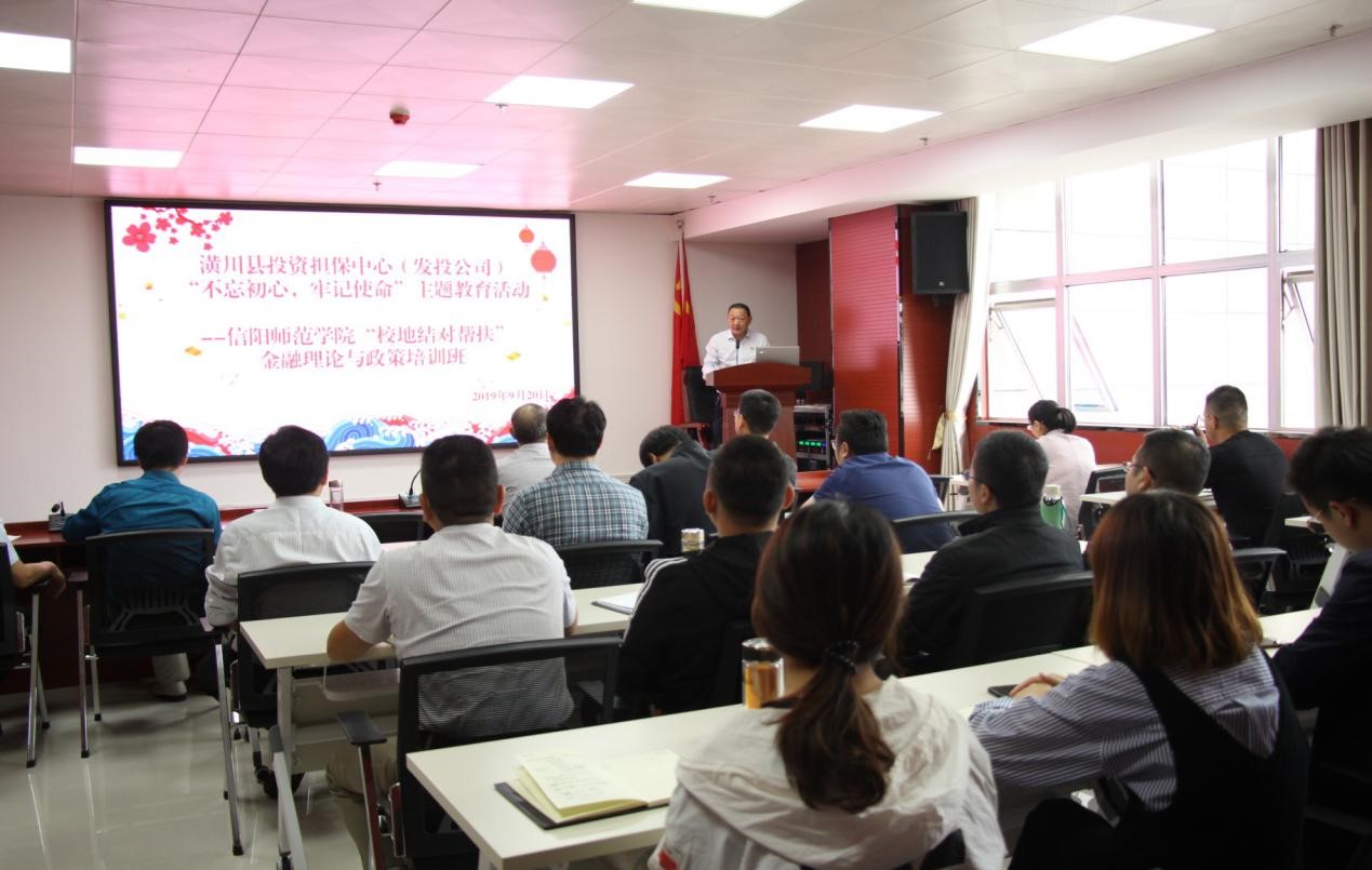 根据ok138cn太阳集团5292019年培训脱贫攻坚工作实施方案,9月20日ok138cn太阳集团529“金融扶贫”博士服务团,在学院党委书记盛正国教授的带领下,赴潢川县发展投资有限责任公司(简称发投公司)举办“校地结对帮扶”金融理论与政策培训班,发投公司书记兼董事长梅利平同志及三十多名公司骨干参与培训。