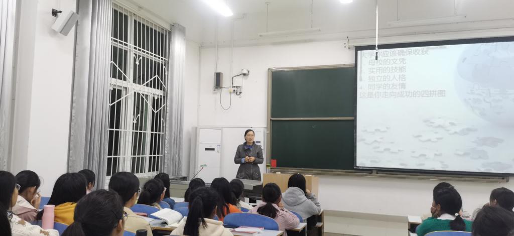 大会伊始,郭跃芳老师欢迎各位同学选择了会计学,指出会计学是一个热门专业,并介绍了ok138cn太阳集团529会计学发展历程。同时她强调,会计学是一个知识包含很广的专业,培养同学们管理、经济、法律和会计学等方面的能力,而且会计学就业前途光明,可以在企、事业单位及政府部门从事会计实务、投资与理财以及教学、科研方面工作。她希望同学们能以会计学自豪,在未来四年合理规划大学生涯,科学高效完成大学学业。随后,郭老师为同学们提供了一些学习方法和需要考的证书,以及未来考研还是就业的选择。她说道,大学首先要给自己树立长期和近期的目标,大学只是一场旅途的起点,我们依旧要不断努力奋进。最后,她总结,同学们在大学要有所收获,完成四块拼图:母校文凭、实用技能、独立人格、同学友谊。要能够主动学习,利用网络,人非生而强大,学而强大。