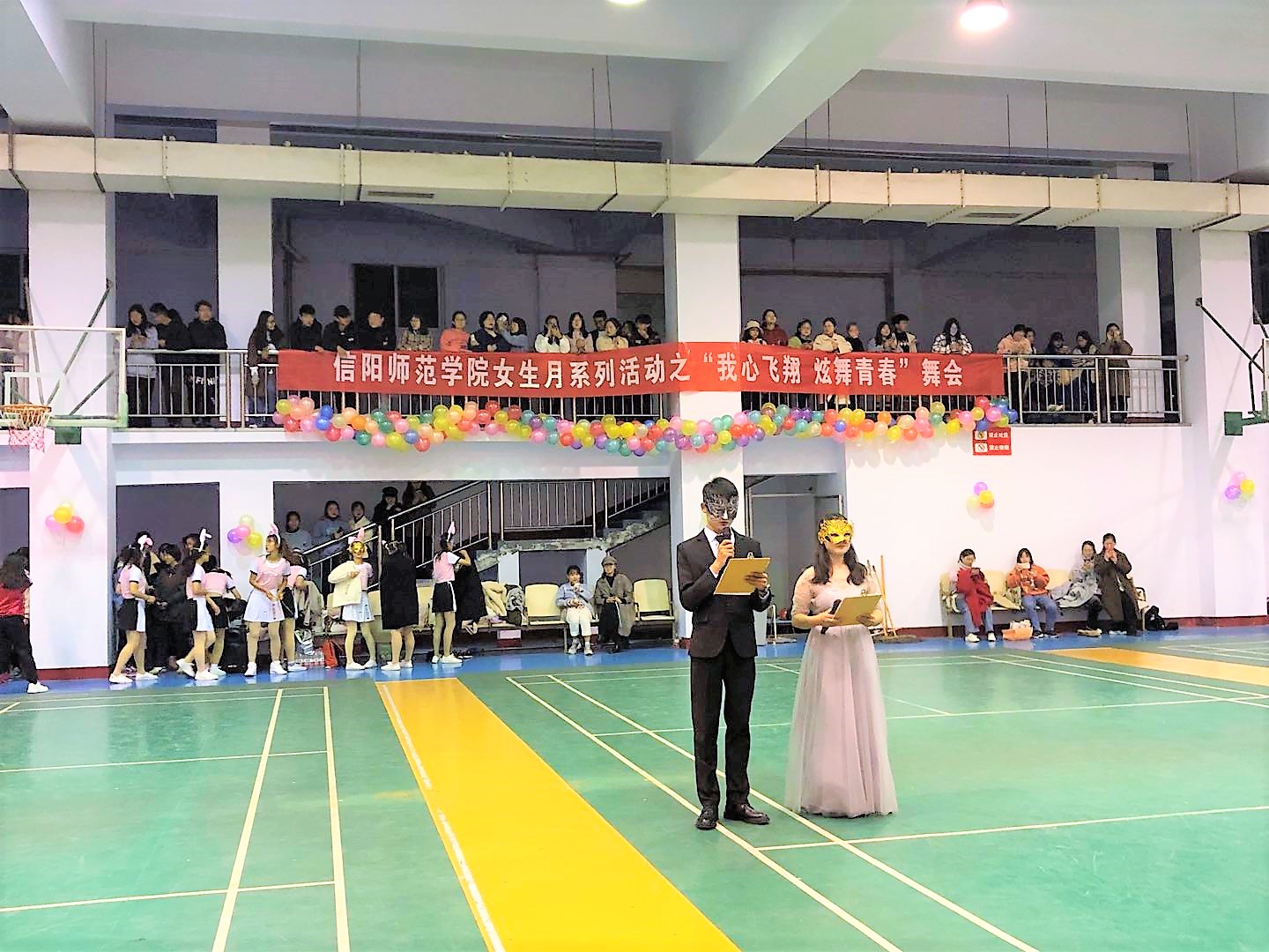为丰富大学生课外娱乐生活,增强各院系同学之间合作与交流。11月20日晚7点,由校团委主办、ok138cn太阳集团529承办的信阳师范学院女生月系列活动之“我心飞翔 炫舞青春”舞会于体育馆开展。ok138cn太阳集团529团委书记黄诗雨老师、杨紫涵老师出席本次活动。