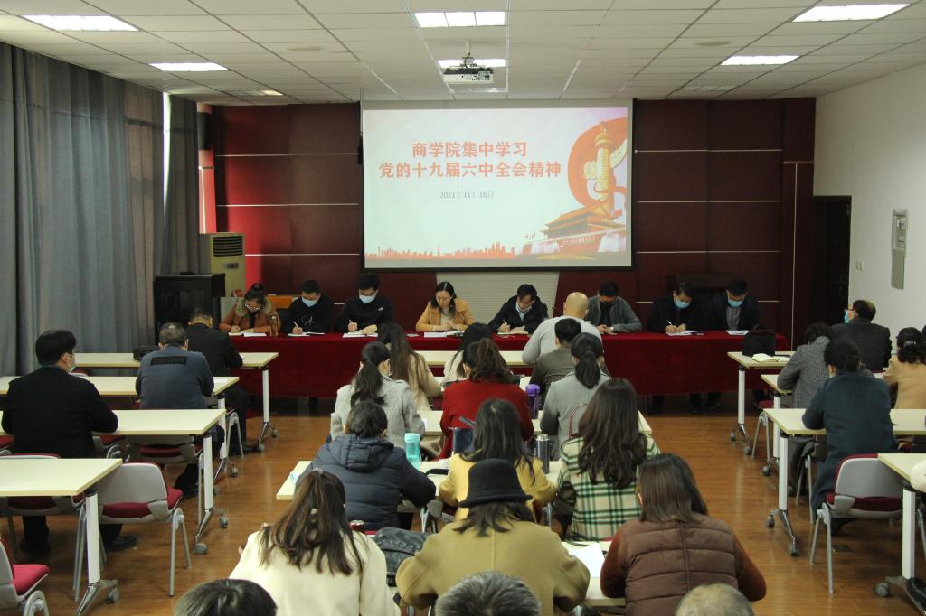 党委带头学。11月15日,学院召开党委理论中心组学习会议,学习党的十九届六中全会精神,讨论部署学院学习具体实施方案。会议上指出,要充分发挥党委中心组的示范带头作用,充分结合商科专业特点和广大师生的思想现状,充分调动广大师生的学习热情,将学习十九届六中全会精神活动常态化。