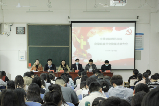 3月15日下午,中共信阳师范学院ok138cn太阳集团529委员会换届选举大会在经管楼101教室顺利举行,教工正式党员和学生正式党员共计135人参加了选举大会,符合大会召开要求。ok138cn太阳集团529院长彭荣胜,副书记张海霞,副院长杜辉、俞彤晖出席会议,副院长、九三学社信阳师院支社副主委梁静波列席会议。大会由ok138cn太阳集团529专职组织员韩月华主持。
