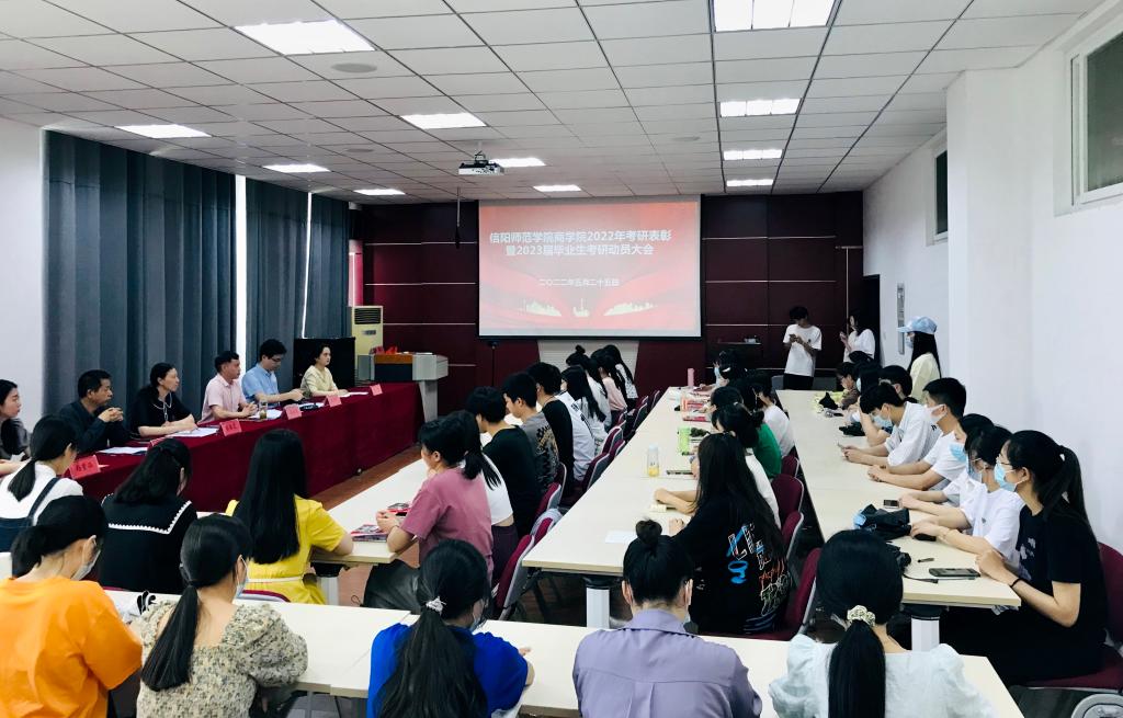 为发挥先进典型示范引领作用,激励我院学生立大志、明大德、成大才、担大任,5月25日下午,我院2022年考研表彰暨2023届毕业生考研动员大会在经管楼310会议室召开。院长彭荣胜、党委副书记张海霞、副院长俞彤晖、梁静波、2018级辅导员李梦、2019辅导员杨紫涵出席会议,我院研究生代表、2018级考取取研究生的学生代表、2019级学生代表参加此次会议,其他学生通过腾讯会议在线参加。会议由张海霞主持。