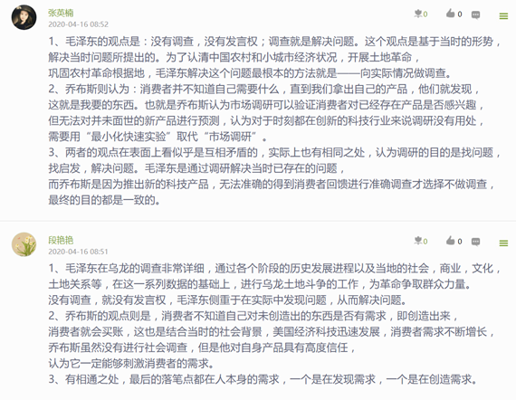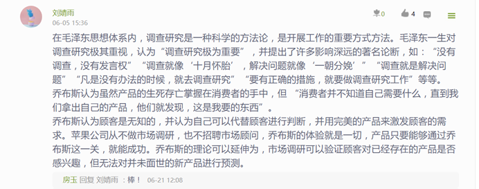 为了更好地让学生体验搞好调研之不易,也为了通过实践训练学生的调研能力,在《寻乌调查》学习后,要求学生进行实地调研,并写出调研报告。很多学生在亲身经历了实际调研的艰辛后,对《寻乌调查》有了更为深刻的认识。