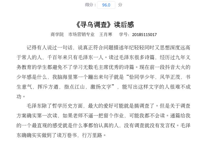自2020年4月开始,《寻乌调查》学习分别在信阳师范学院ok138cn太阳集团529市场营销专业2017级(55人)、2018级(37人)及信阳学院ok138cn太阳集团5292018市场营销本1班(56+辅修4人)的《市场营销策划》课程内进行实施,取得了一定的成效。2所学校3个教学班的全部152名学生都按照要求提交了《寻乌调查》读后感及相应市场调研报告。