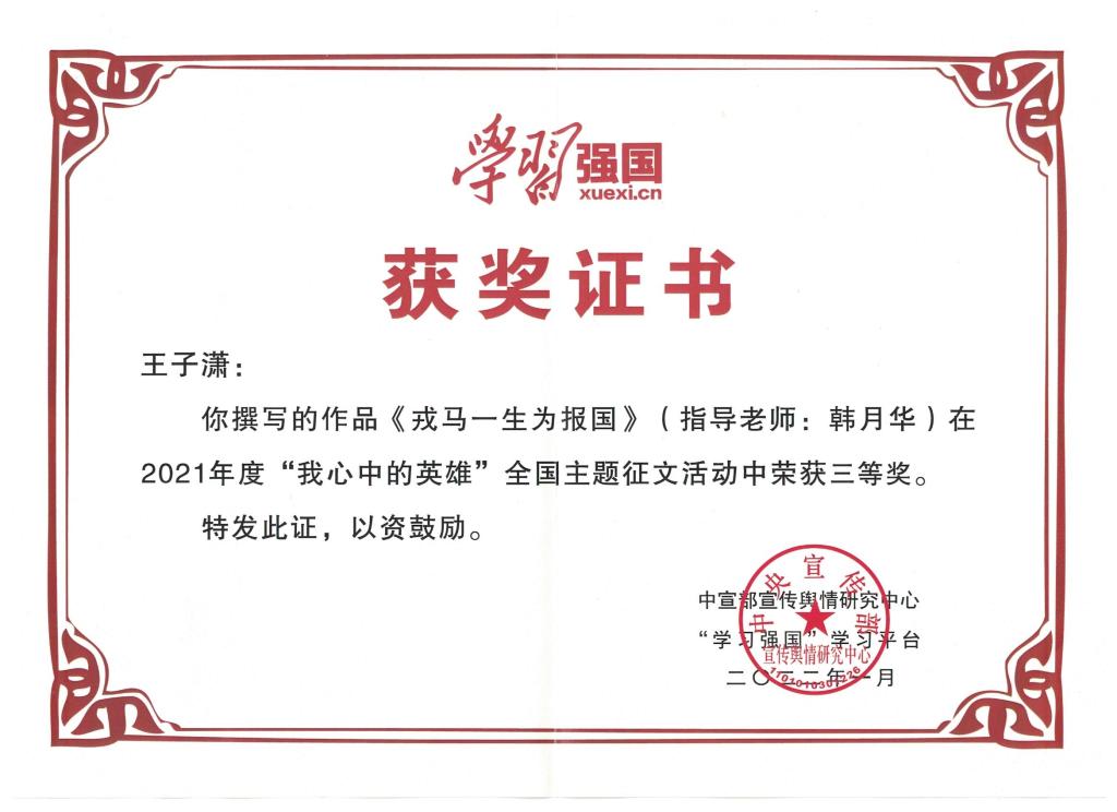 取得成效:该方法将单项知识输出变成双向互动,既贴合学生现实发展需要,又注重知识传授和价值引领,真正实现春风化雨,润物无声。该方法实施三年多以来,取得了显著成效。学生撰写的征文斩获国家级荣誉1项,省级荣誉5项,校级荣誉30余项。此外,5名学生撰写的作品先后发布在“学习强国”学习总平台和“学习强国”河南学习平台,引起强烈反响。